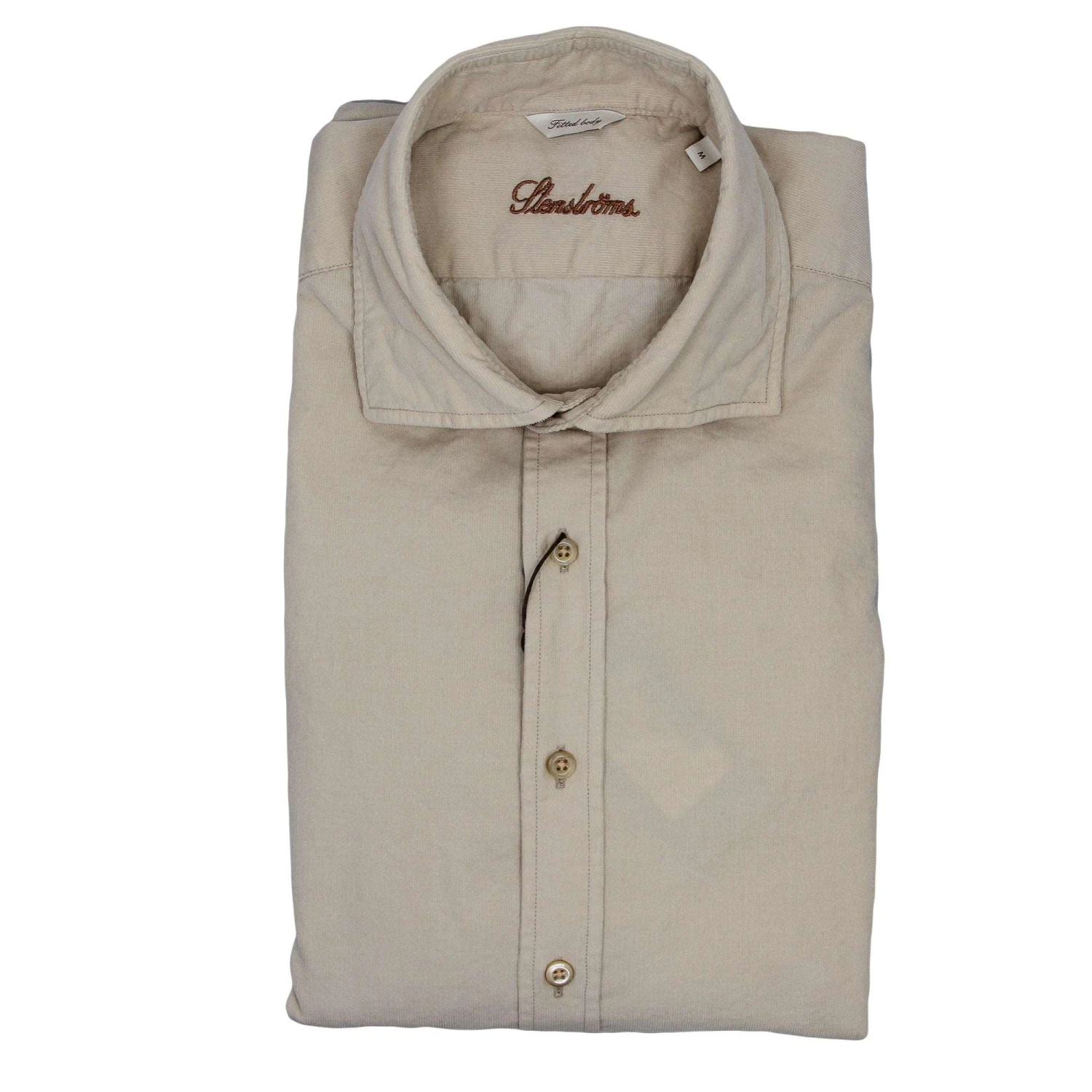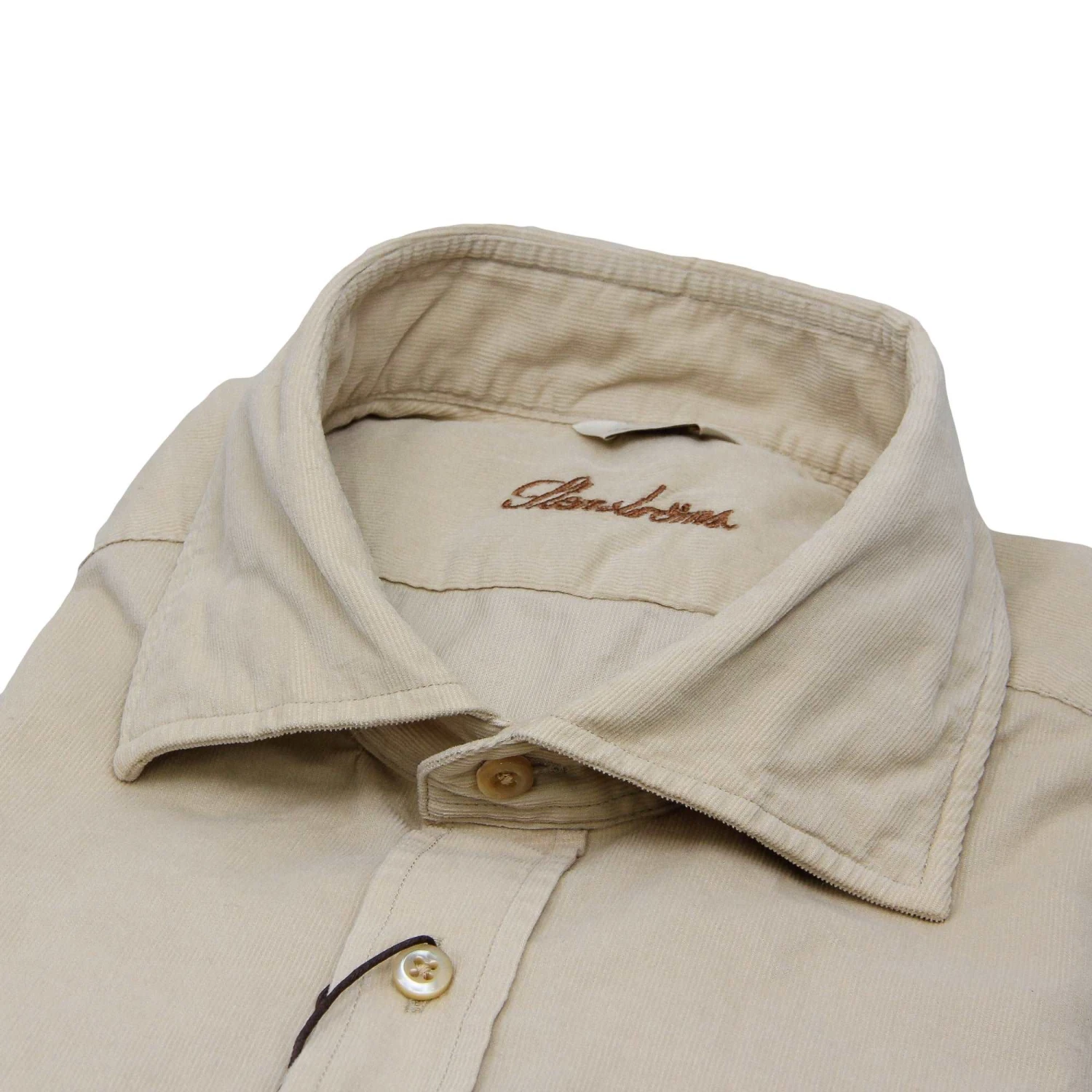 This corduroy shirt is made of pure cotton. The shirt is detailed with mother of pearl buttons, single cuffs and a cut-away collar.
