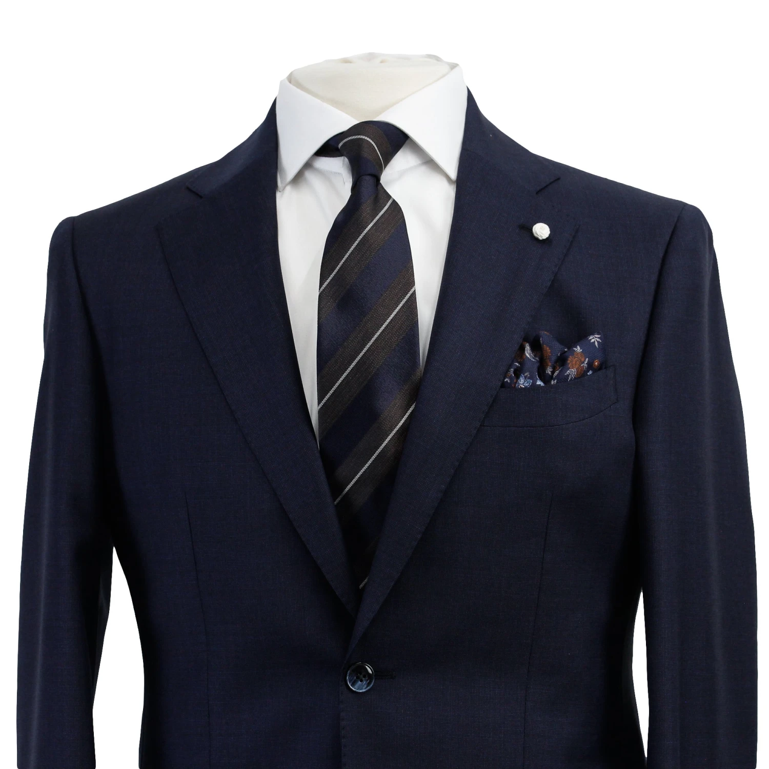 Elevate your style to new heights with the Blue Neat Contemporary Fit Suit, meticulously crafted by Luigi Bianchi in Italy. This suit is a testament to Italian craftsmanship, featuring exquisite details and luxurious materials.
