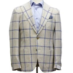 Whether you’re heading to the office or dressing up for a more special occasion, this jacket effortlessly adapts to your style needs. Its rich blue windowpane pattern is classic and versatile, ensuring you make a statement wherever you go.