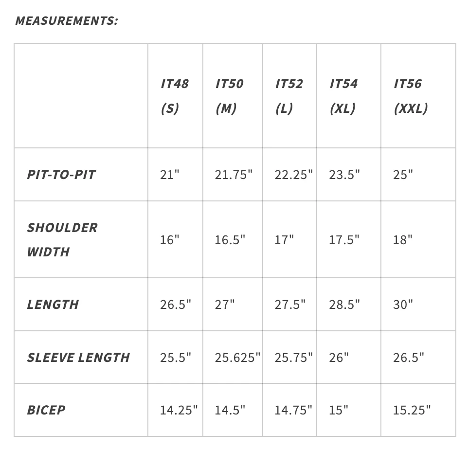 | Size | 50 EU / M, 52 EU / L, 54 EU / XL, 56 EU / XXL, 60 EU / XXXL |