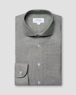 Introducing the Green Semi-Solid Mélange Twill Dress Shirt by ETON, a timeless and sophisticated addition to any man’s wardrobe. Made with the finest quality materials and crafted with exceptional attention to detail, this dress shirt is a true testament to the ETON brand’s commitment to producing impeccable menswear.