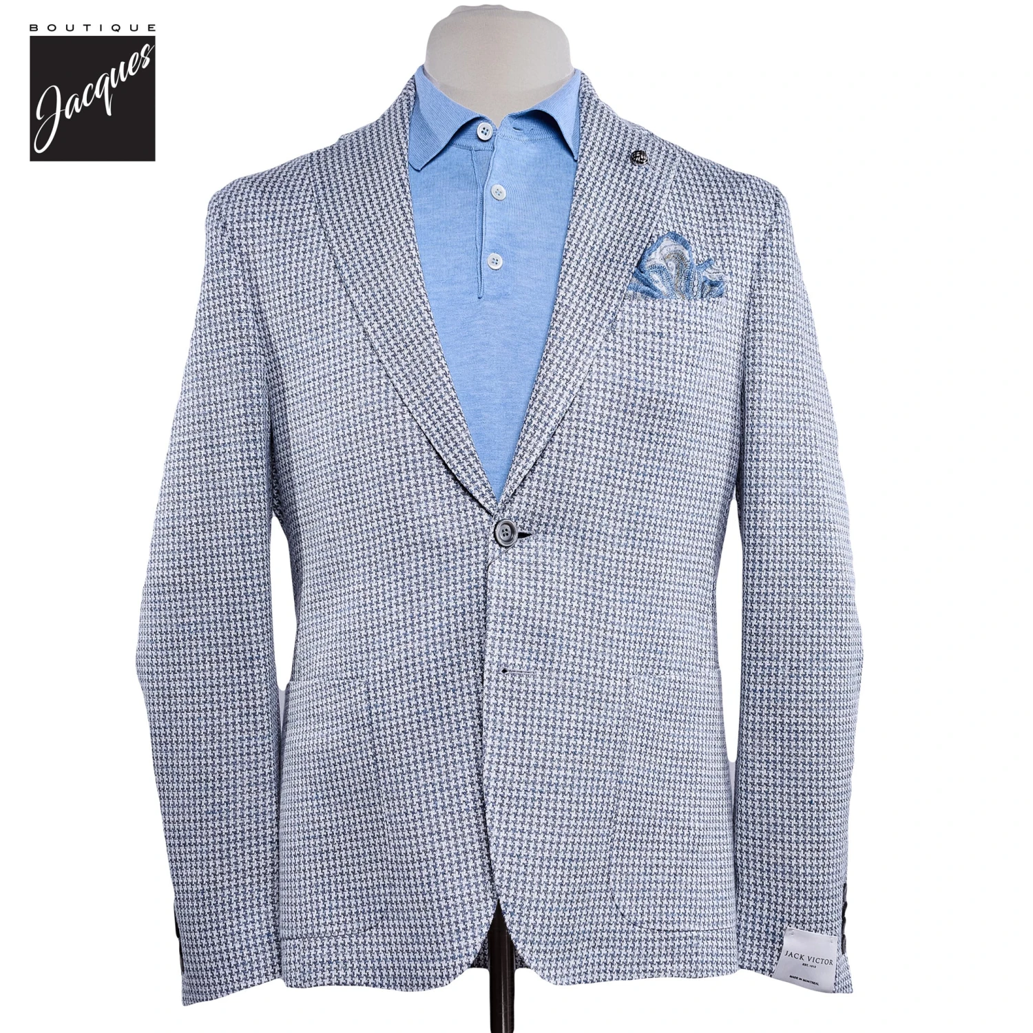 This Jack Victor sport jacket comes from their ComfortWear Collection, using innovative materials to create a smart and casual look with comfort and versatility in mind. Featuring a contemporary fit with a herringbone pattern, the jacket embraces the natural stretch of knit fabrics to allow the wearer to move with the jacket. The wool and cotton composition provides both insulation and cooling effects, making it the perfect jacket to wear all year round.Â