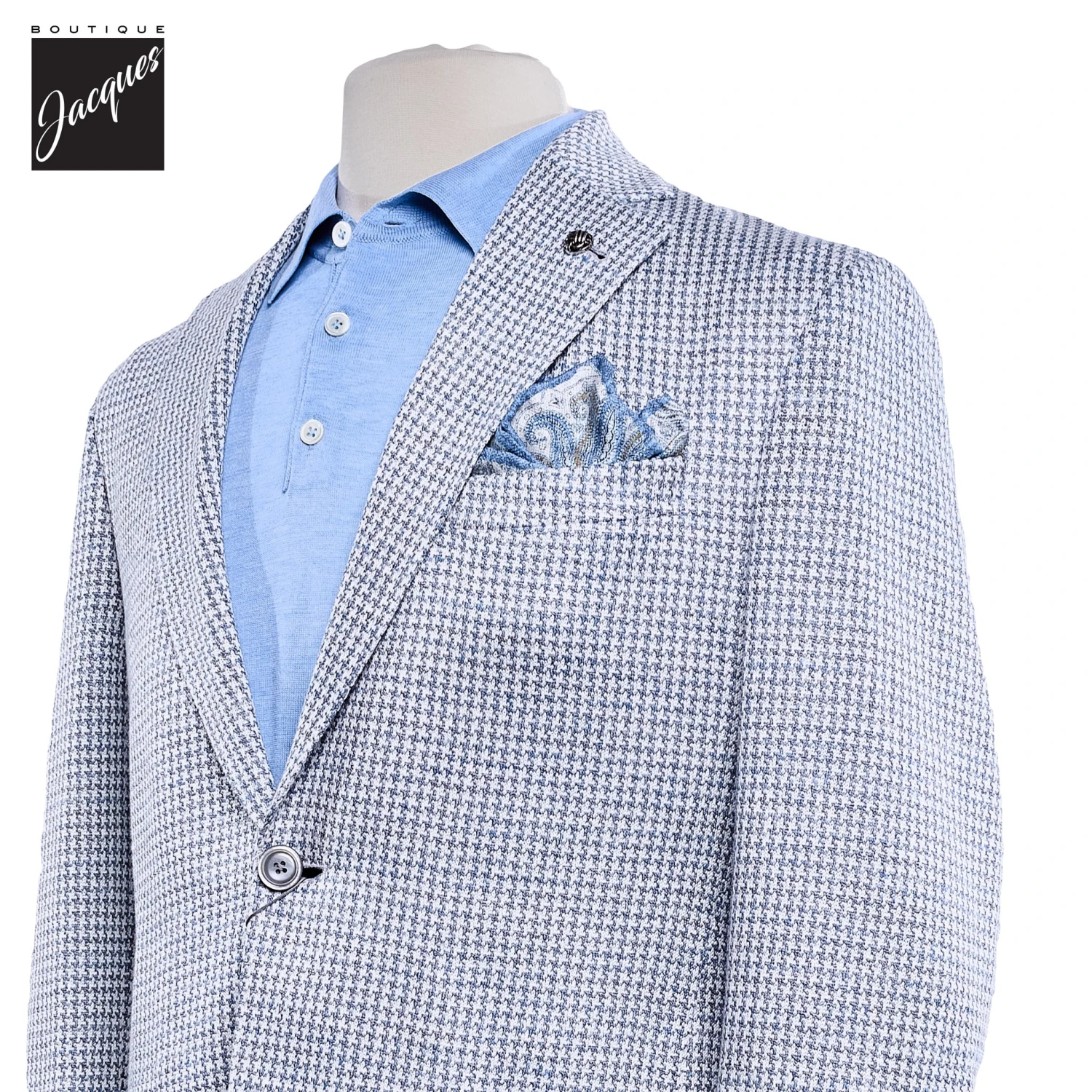 - Single-breasted, two button, notch lapelÂ