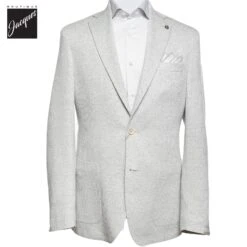 Upgrade your wardrobe with the Light Gray Knit Sport Jacket Suit by Jack Victor. Crafted from the finest Linen Cotton Blend fabric, this suit is the epitome of luxury and elegance. The small houndstooth pattern adds a touch of sophistication to the timeless design, making it a versatile option for any occasion.