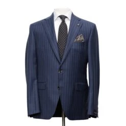 This pinstripe blue suit by Jack Victor is made from 100% wool making the suit lightweight, breathable and both crease and water-resistant, with the fabric being woven in Italy by Reda. The modern fit allows for more room between the body and the jacket meaning more room for comfort and movement while the cut of the pants is not too close to the body. The pinstripe pattern complements the colour of the suit creating a contrast between the white and blue. One is sure to stand out with this sophisticated two-piece at any formal occasion.