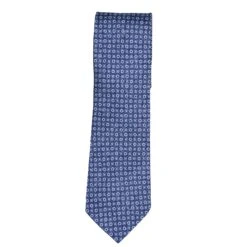 Navy blue tie made in Italy from pure silk. The tie is designed with a geometric pattern, featuring rounded and medallion-shaped motifs. We recommend pairing this beautiful tie with a tailored suit or a sports jacket and your favorite dress shirt. Wear this tie on any semi-formal or formal occasion, ranging from office meetings to wedding ceremonies!