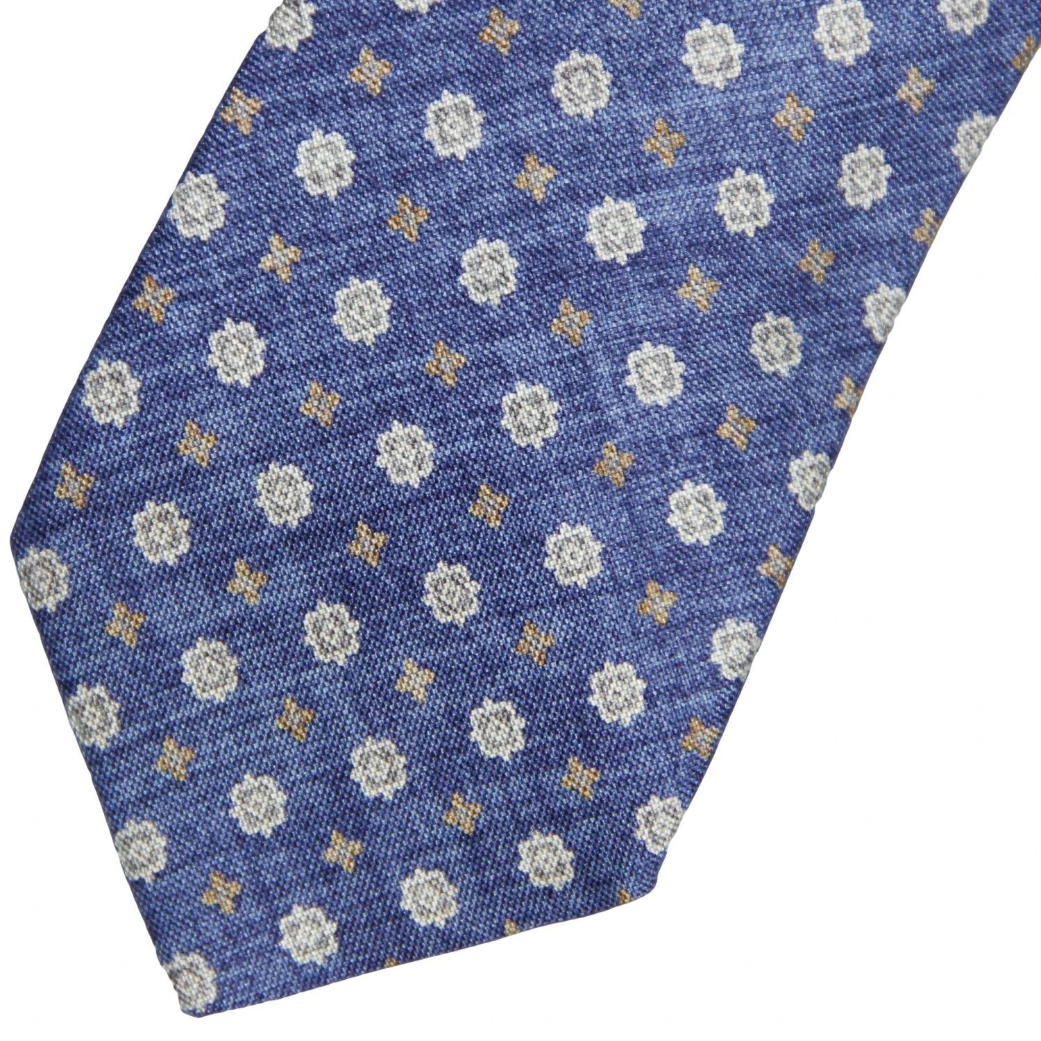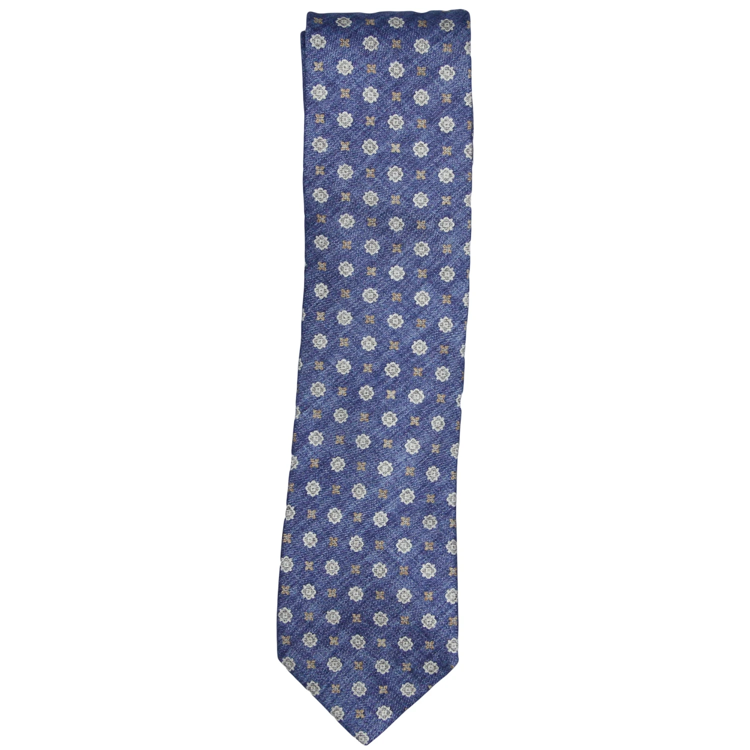 Royal blue tie made in Italy from pure silk. The tie is designed with a geometric pattern, featuring medallion-inspired motifs. We recommend pairing this beautiful tie with a tailored suit or a sports jacket and your favorite dress shirt. Wear this tie on any semi-formal or formal occasion, ranging from office meetings to wedding ceremonies!
